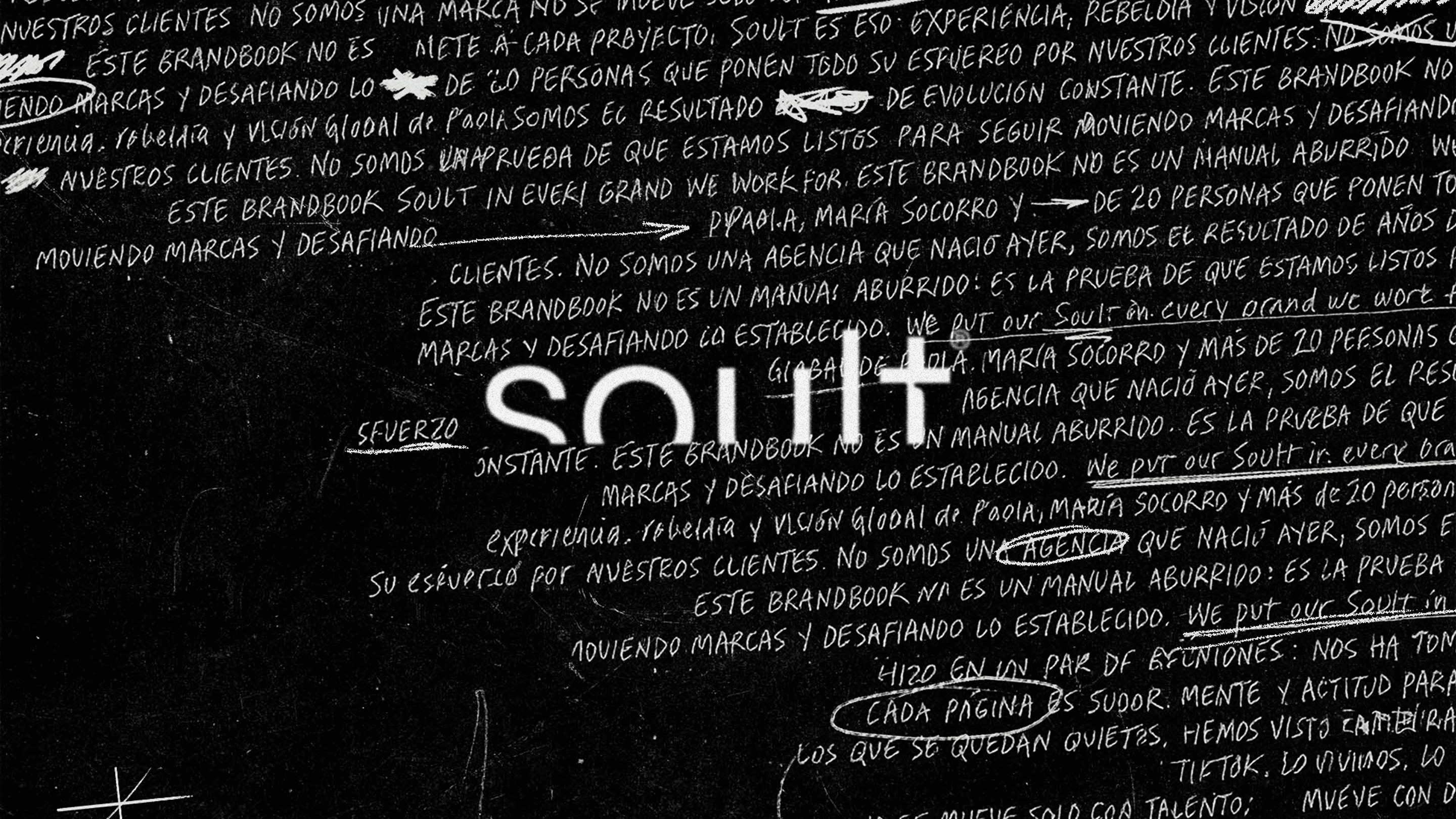 Soult es eso: experiencia, rebeldía y visión global de Paola, María Socorro y más de 20 personas que ponen todo su esfuerzo por nuestros clientes. No somos una agencia que nació ayer, somos el resultado de años de evolución constante. Este brandbook no es un manual aburrido: es la prueba de que estamos listos para seguir moviendo marcas y desafiando lo establecido.